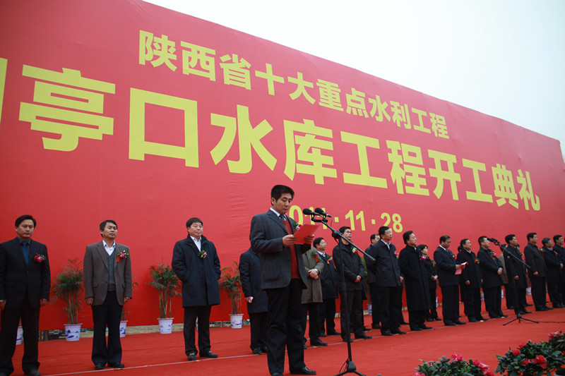 2011年11月28日上午10時(shí)許,亭口水庫工程開(kāi)工典禮儀式在亭口水庫壩址(黑河右岸灘地)隆重舉行。陜西省副省長(cháng)祝列克以及省發(fā)改委、省財政廳、省水利廳、省國土資源廳、省林業(yè)廳、省環(huán)保廳、咸陽(yáng)市市委、市人大、市政府、市政協(xié)等省市領(lǐng)導出席典禮。典禮由咸陽(yáng)市市長(cháng)姜鋒主持。典禮儀式上,水務(wù)公司董事長(cháng)張紅星代表公司全體員工鄭重承諾:“我們將繼續頑強拼搏,更加努力工作,力爭亭口水庫早日建成,讓寶貴的黑河水資源為彬長(cháng)礦區開(kāi)發(fā)服務(wù),為彬長(cháng)兩縣人民造福。”亭口水庫工程的正式開(kāi)工,是工程建設的重要節點(diǎn),標志著(zhù)亭口水庫工程進(jìn)入建設關(guān)鍵時(shí)期。