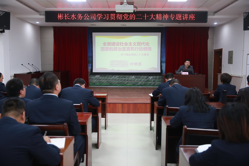 為了深入學(xué)習貫徹黨的二十大精神,深刻領(lǐng)會(huì )、全面把握二十大精神實(shí)質(zhì),5月8日,彬長(cháng)水務(wù)公司舉辦學(xué)習貫徹黨的二十大精神專(zhuān)題講座,邀請市委黨校黨史教研室主任葉明亮副教授作專(zhuān)題講座。會(huì )議由公司黨總支紀檢委員、副總經(jīng)理吳錦主持,全體員工參加。